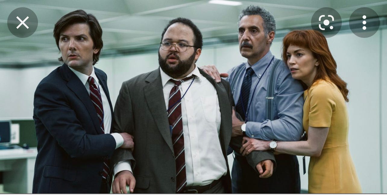 Mark (Adam Scott from “Parks and Recreation), a forty-something corporate droog, is a newly promoted supervisor at Lumon, a biotech firm. He supervises archetypical company man Irving (John Turturro), snarky Dylan (Zach Cherry) and newly severed Helly (Britt Lower), replacing Petey (Yul Vazquez), fired for mysterious reasons.