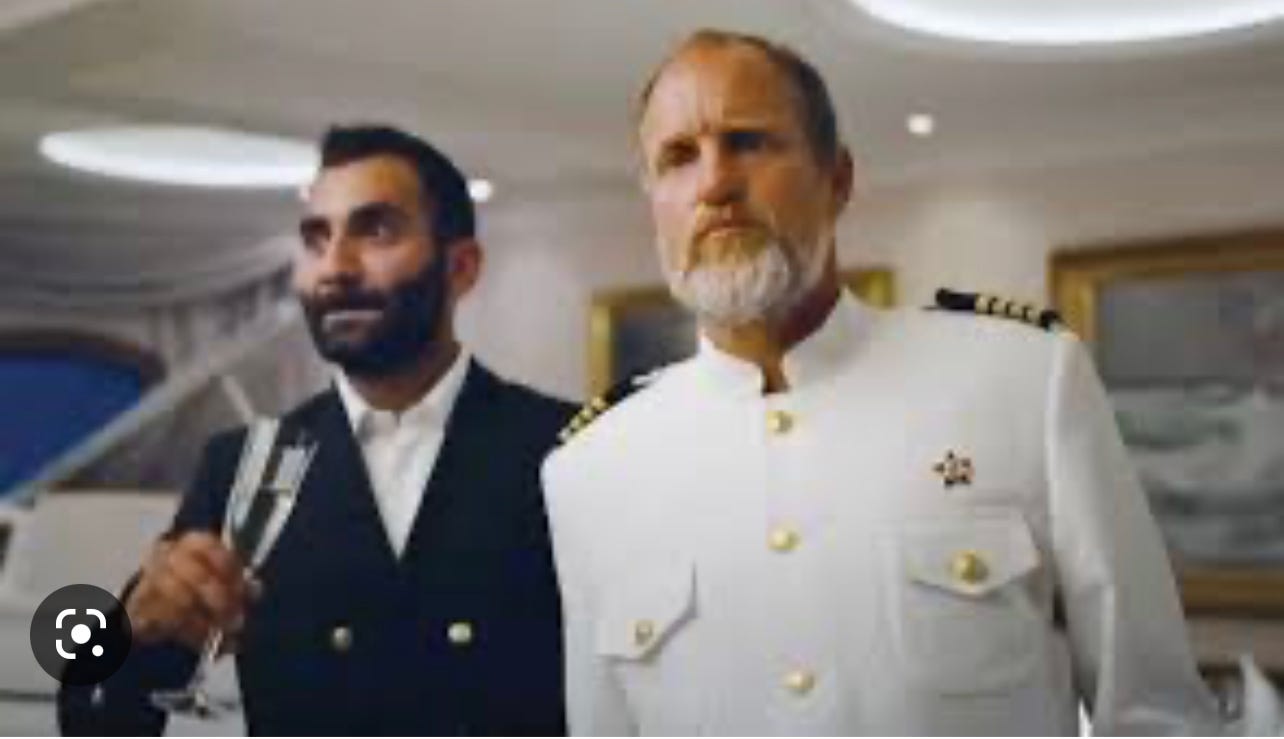 Who are these white super-privileged shmoes? In no particular order, they include a BF and GF model couple (Charlbi Dean Creek and Harris Dickinson); a vulgar Russian oligarch and his equally vulgar wife (Zlatko Burić and Sunnyi Melles); a homely single gazillionaire (Henrik Dorsin); a British couple (Oliver Ford Davies and Amanda Walker) who got rich making parts for hand grenades; and other assorted entitled gentlemen and ladies. They’re guests on a super-luxurious yacht, captained by a drunk (Woody Harrelson). And without giving away too much of the plot, the passengers are beset by a series of events that you shouldn’t wish on your worst enemy.