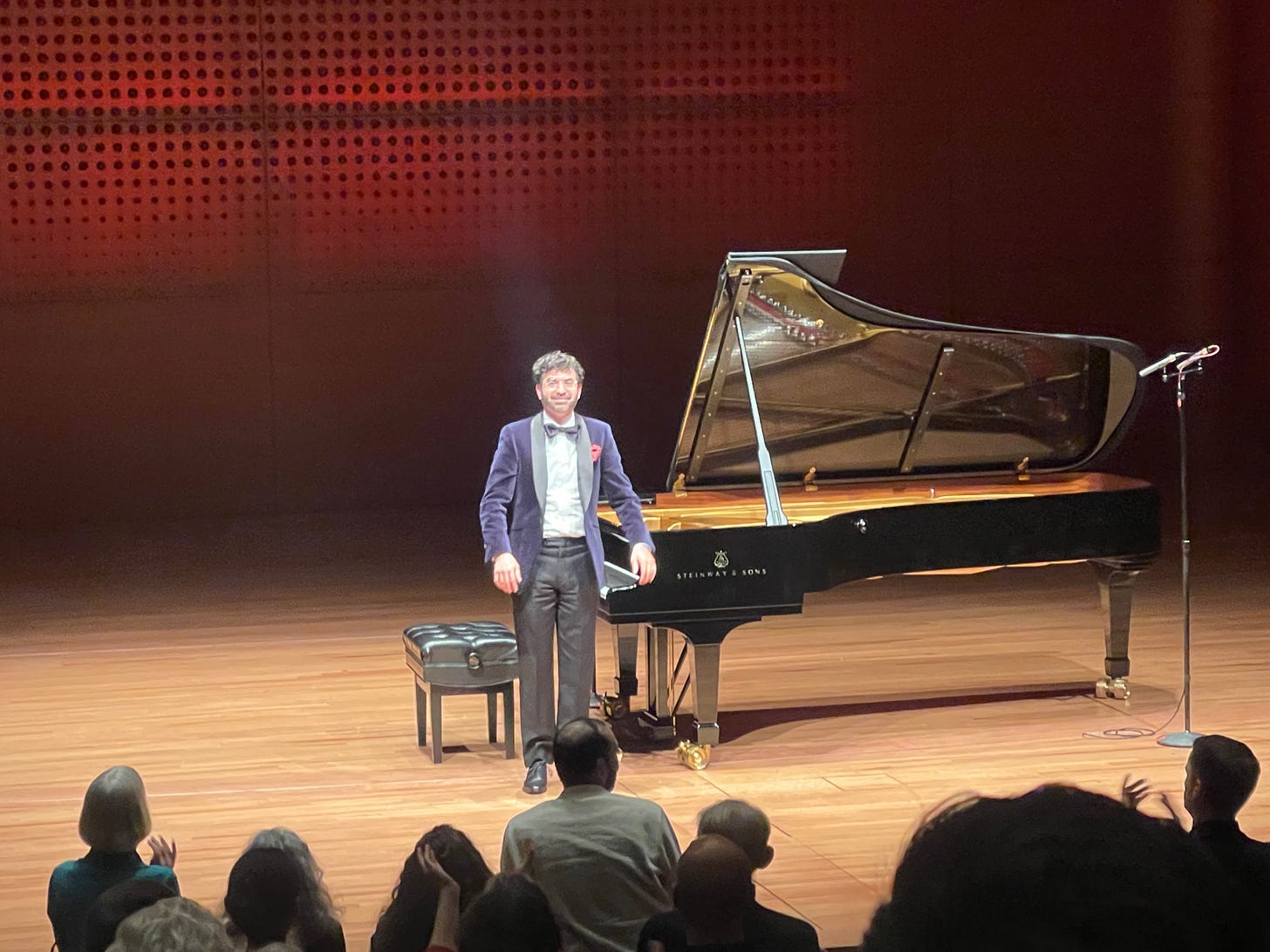 Charming and indefatigable, MSB had the audience in stitches—mind you, as many stitches as a stolid Chamber Music Society audience can find itself in. But really, how can you not at least smile at a joke about spending lonely Saturday nights during the pandemic emailing German libraries to find music by Delphine von Schauroth, an obscure German pianist from 1830. Hey…we’ve all been there, right?