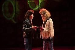 The twist here is that all the hyper-macho band members are played by women: Amy Staats nicely underplays Eddie (she’s also the playwright) and the fabulous Megan Hill (who gives Roth the idiotic flash he’s famous for). Even more gender-bendingly, Eddie’s wife, Valerie Bertinelli (yes, her) is played by a man (the very hairy-legged Omar Abbas Salem).
